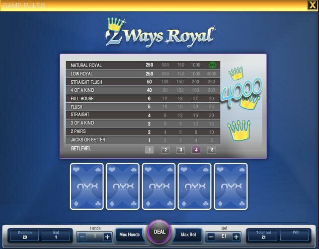 The above picture is an actual screen shot of the 2 Ways Royal game